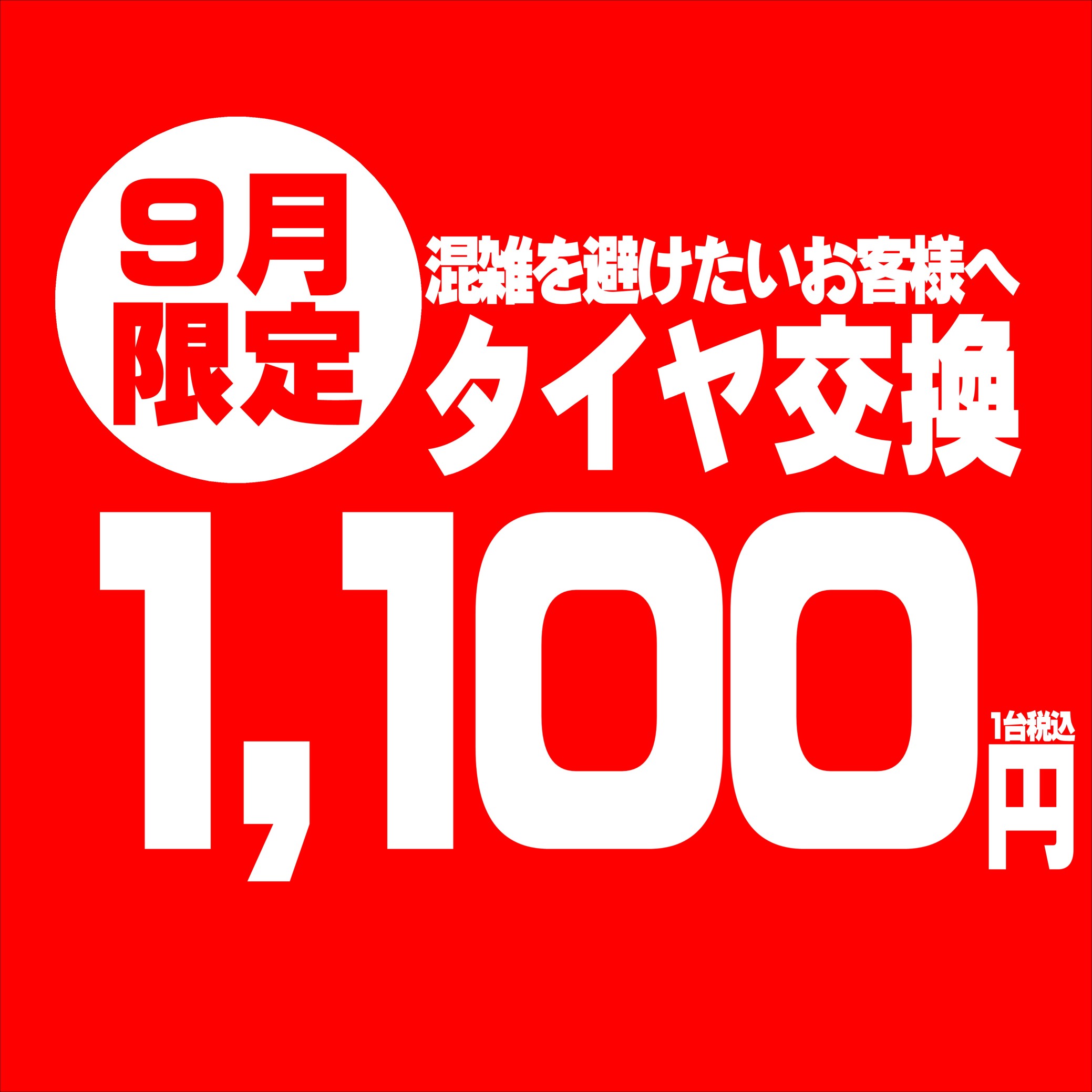 9月限定!タイヤ交換1,100円/1台税込み