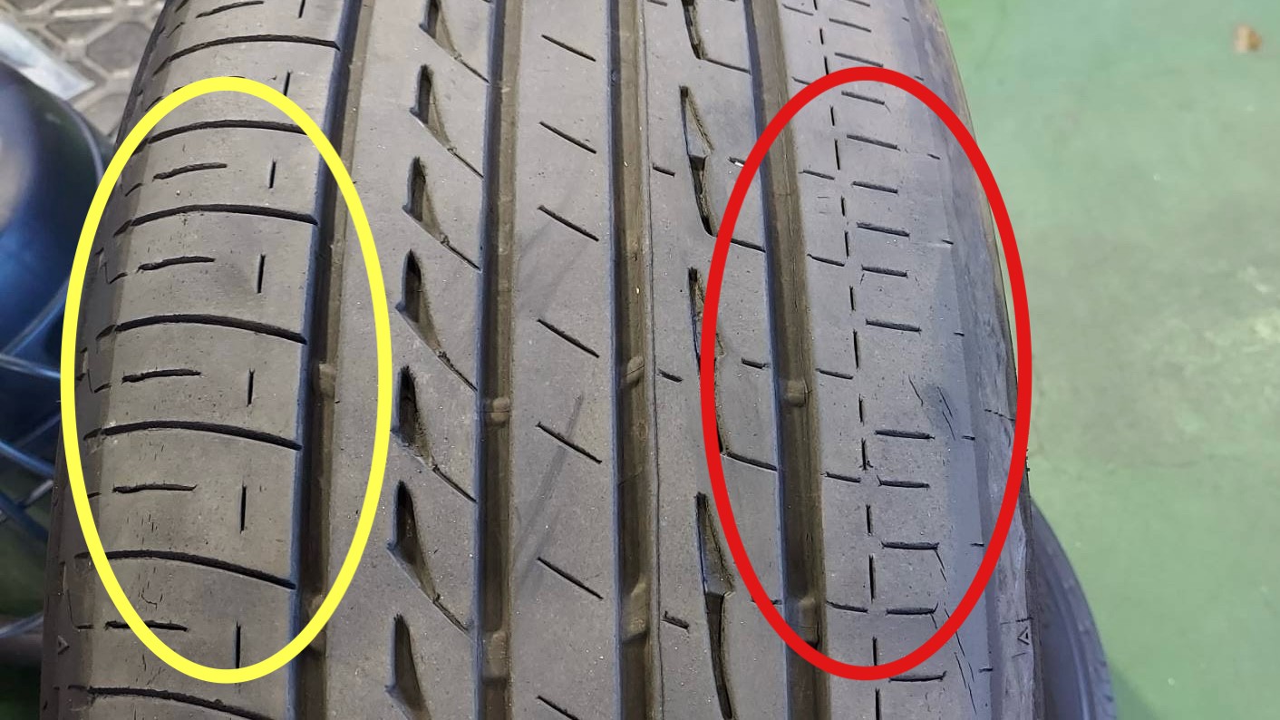 タイヤの偏摩耗(片べり)があげられます。