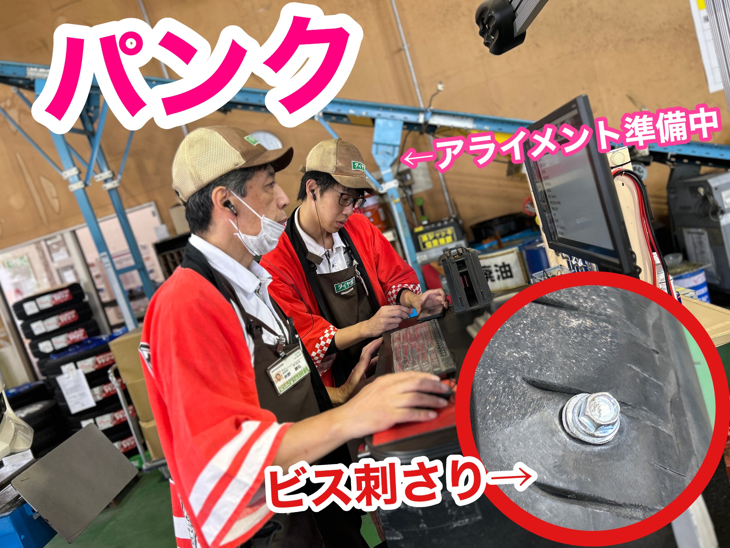 本日、パンクの修理にてご入庫のお車に