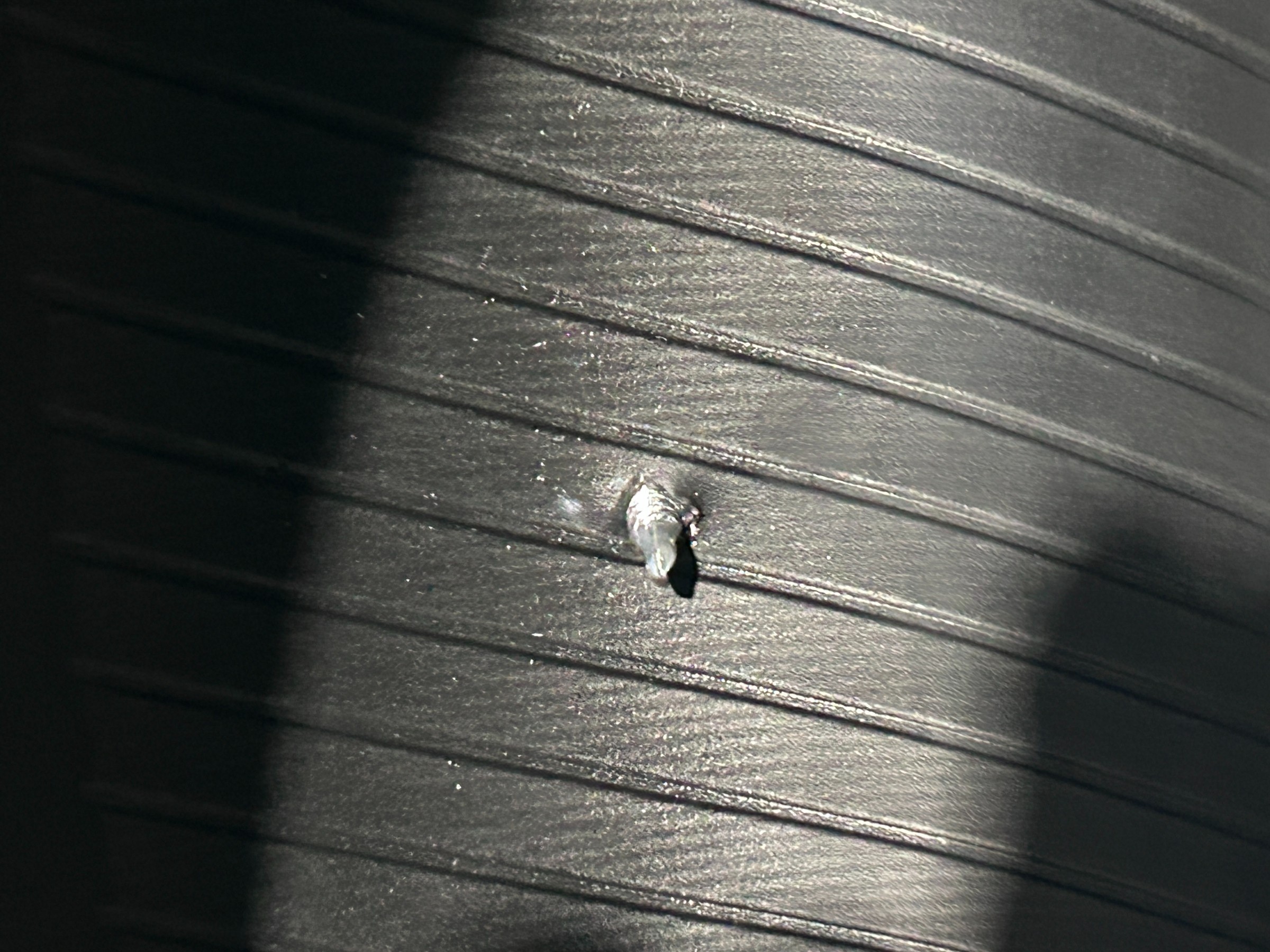 おそらく刺さったばかりの状態で、大きなビスが。。。