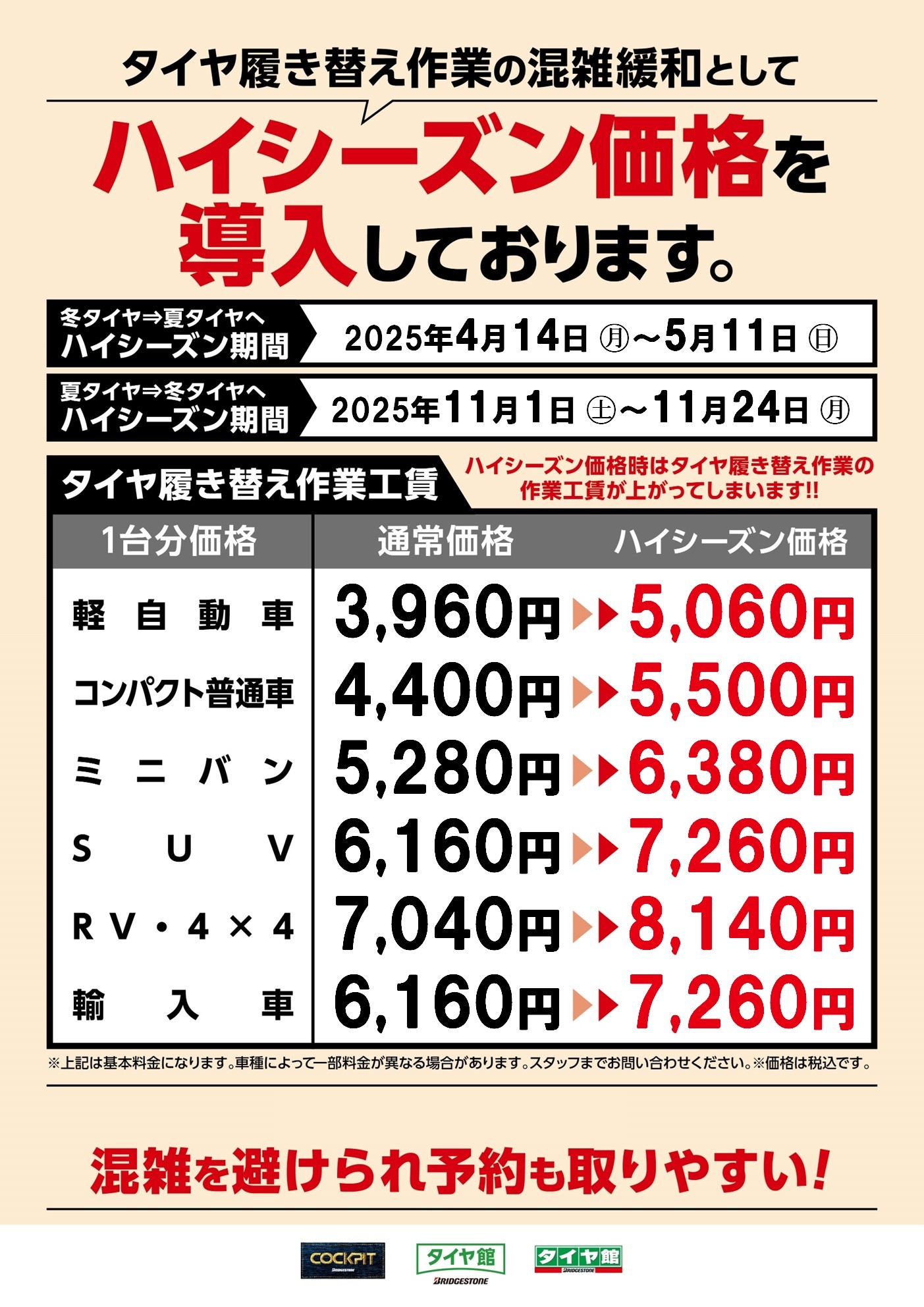 10月の3週目くらいからタイヤ交換で混雑が予想されています。