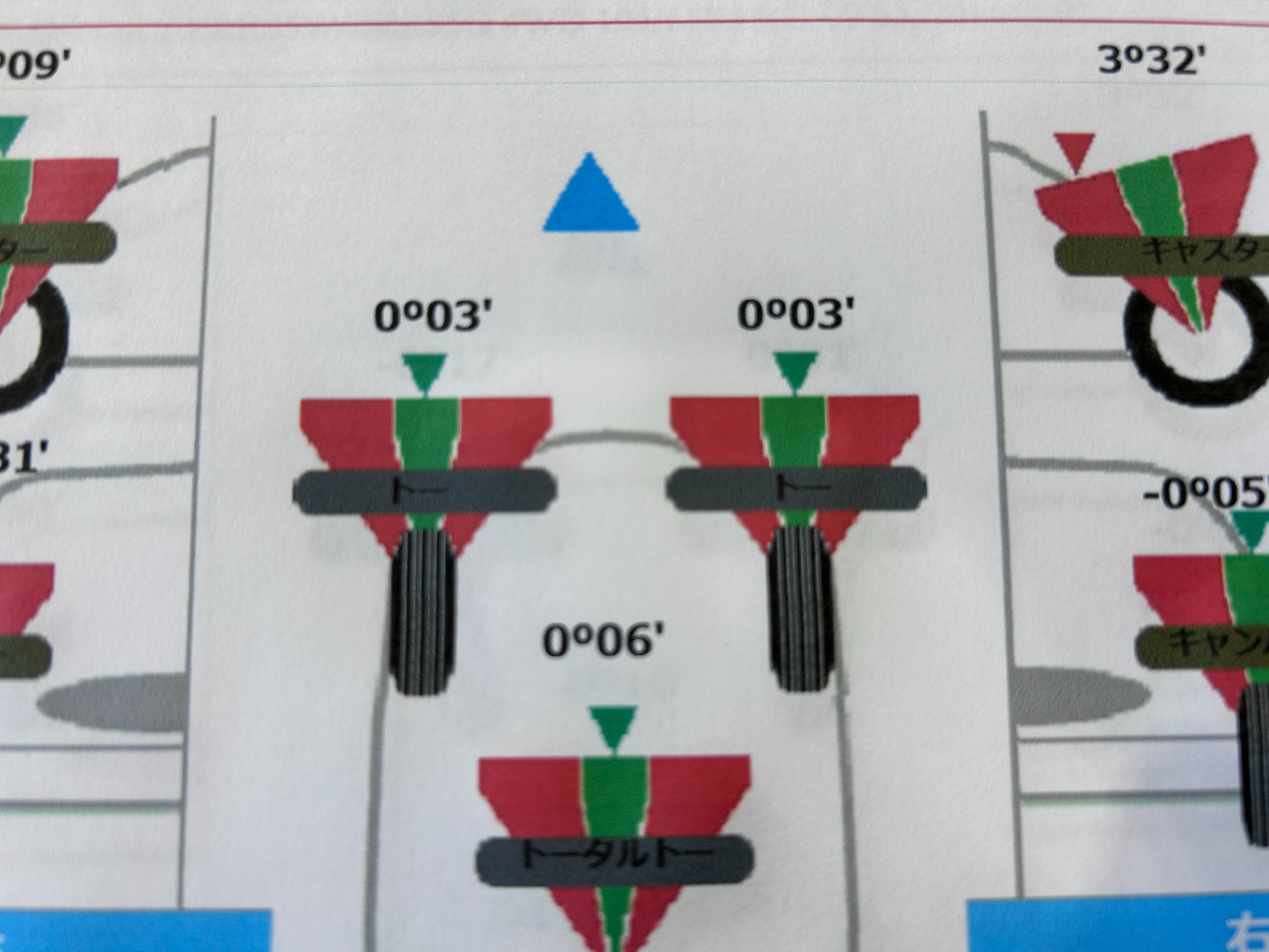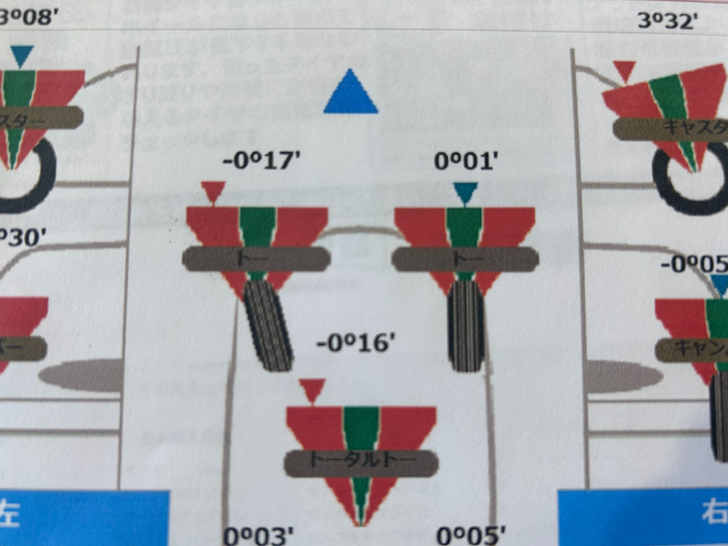 フロントのタイヤが基準値から大幅にずれていることが判明。