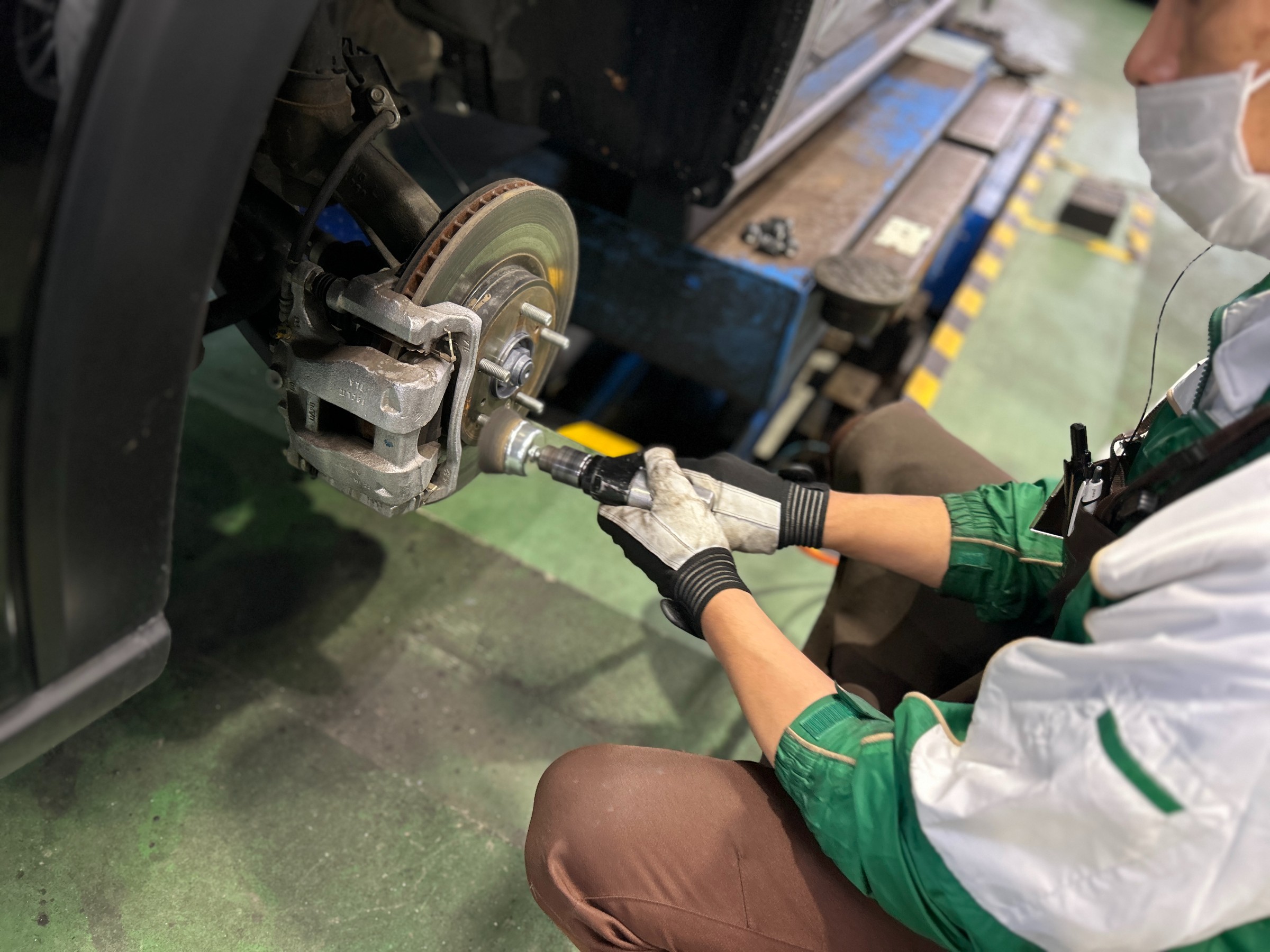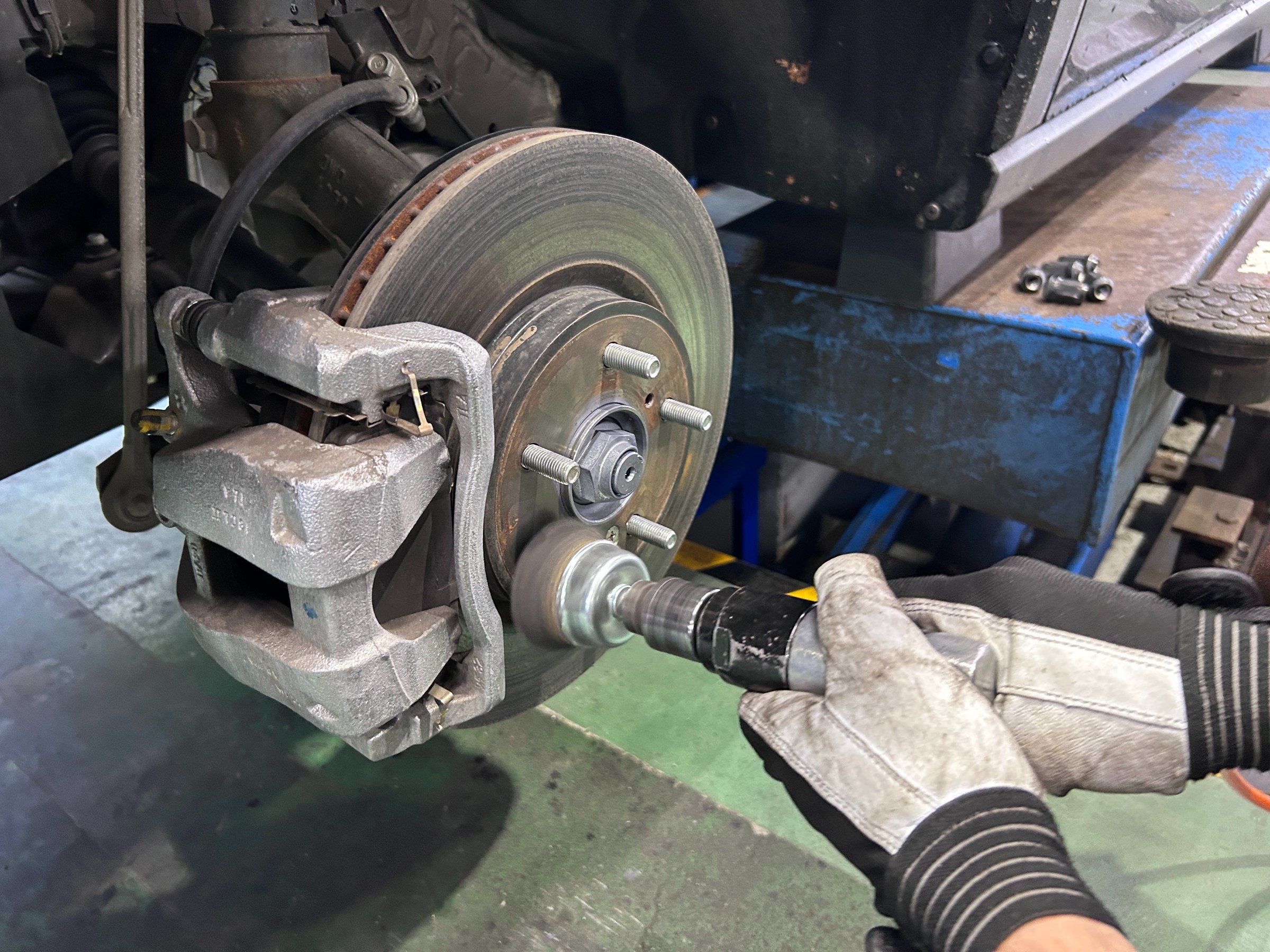 近年は、ホイール取付面の錆止め施工が