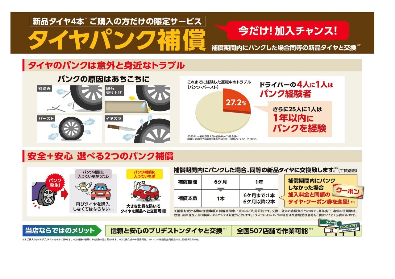 パンク補償も当店はご用意しております♪