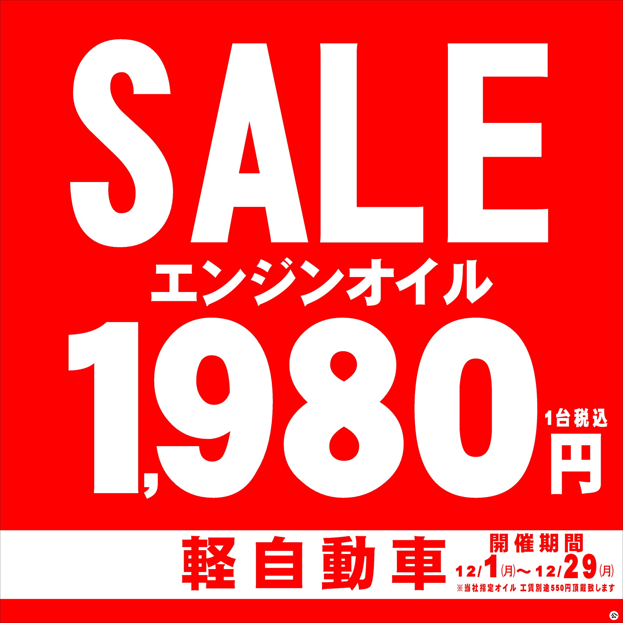 年末感謝御礼価格!!オイル交換軽自動車1,980円!!
