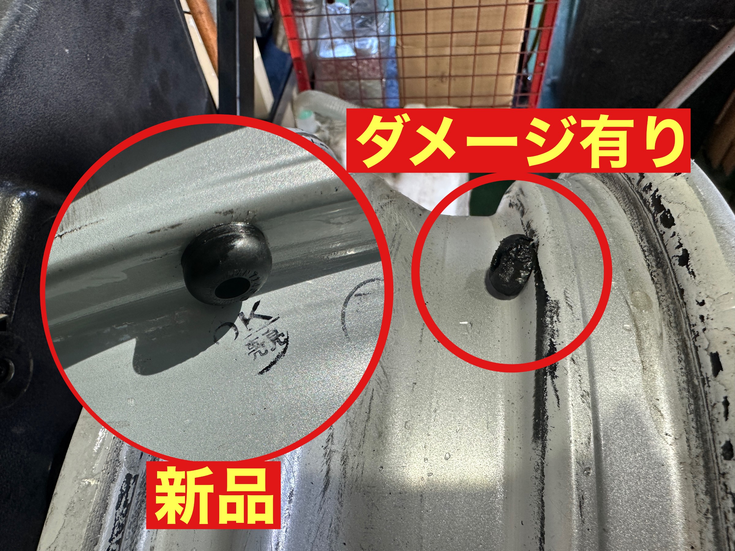 バルブ(タイヤの空気を入れる部分)にもダメージが。。。
