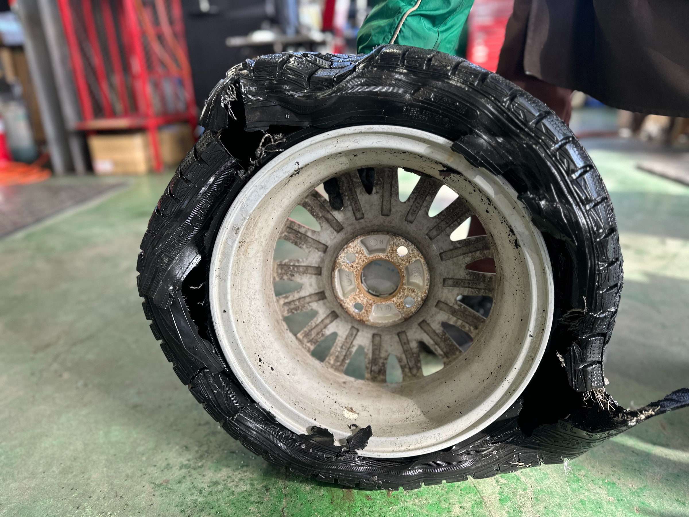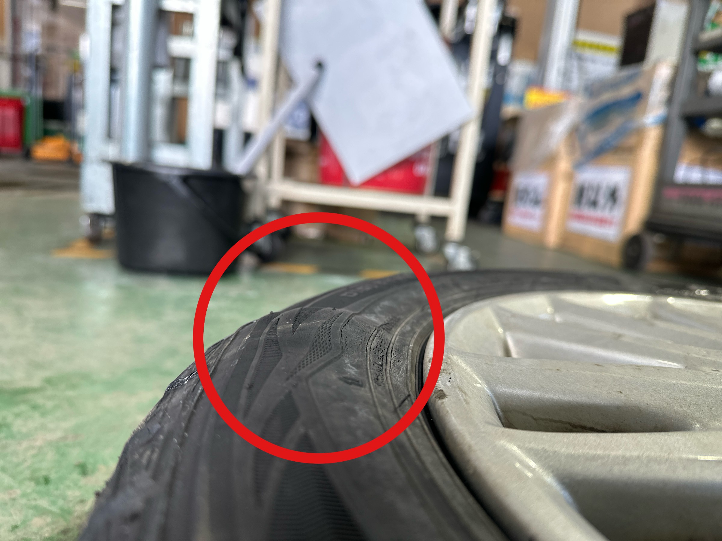 ここまでタイヤにダメージがあると