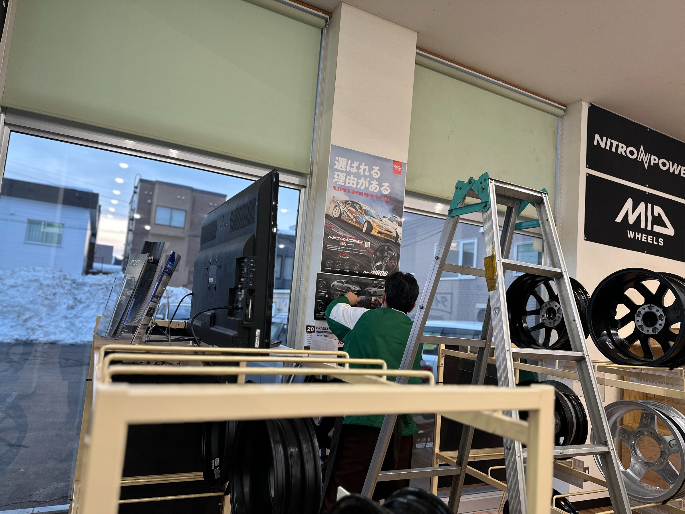 新川駅前の展示は絶賛夏タイヤ仕様に変更中です!