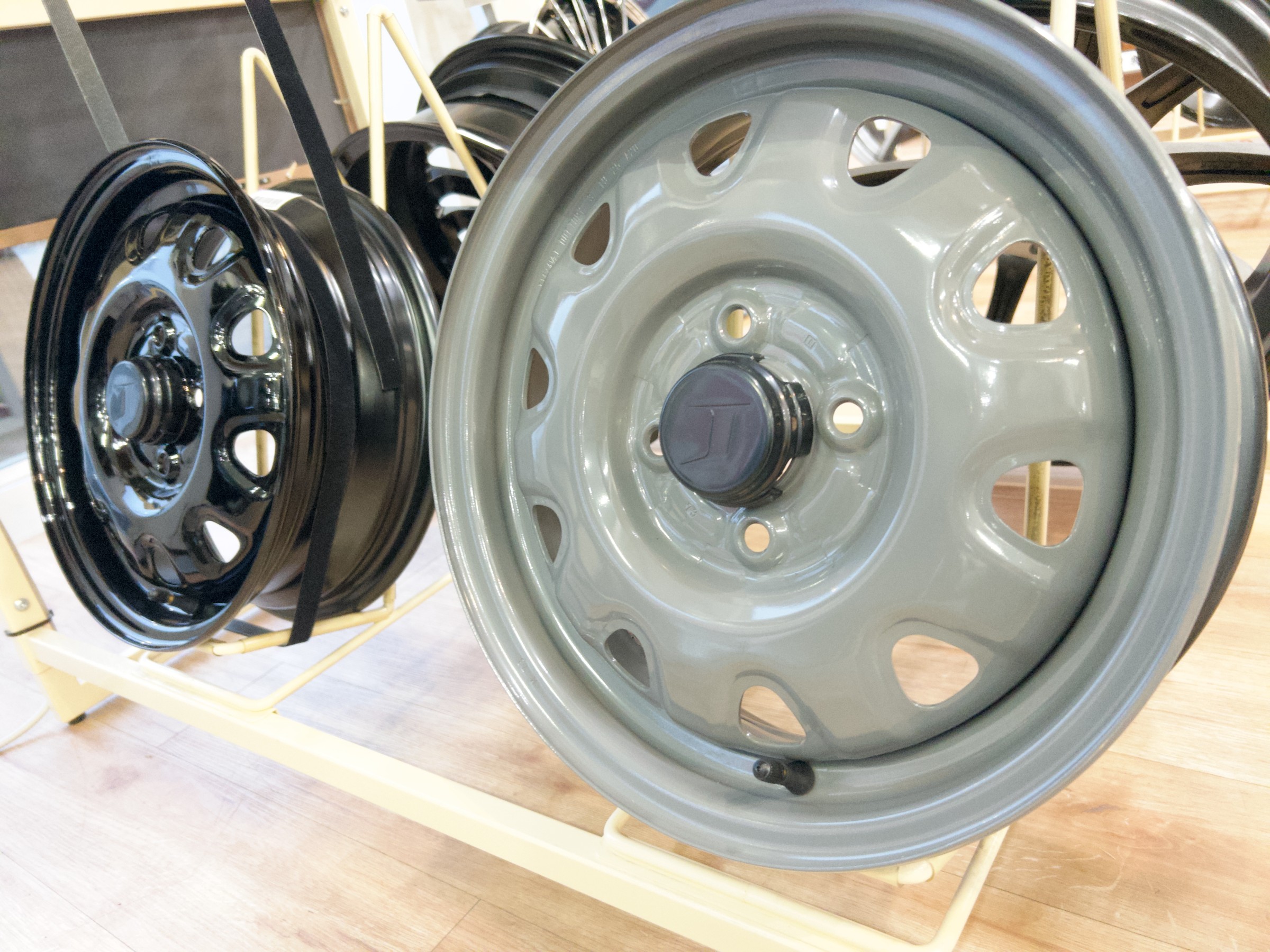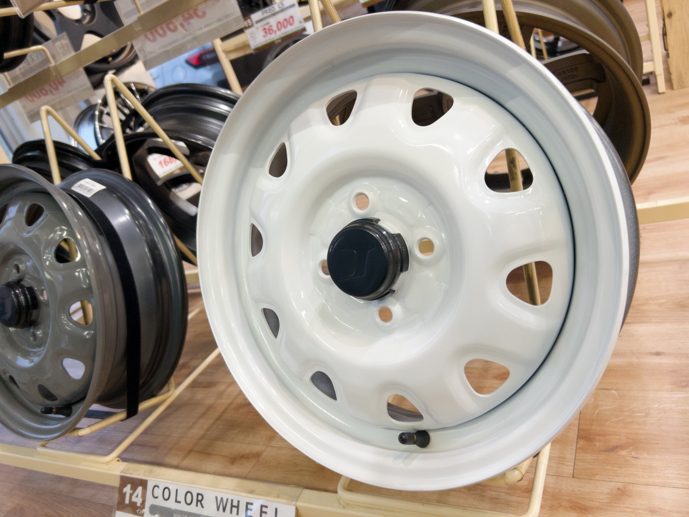 (軽自動車の鉄チンホイールも在庫あります!!ホワイト、グレー、ブラックの14インチ)