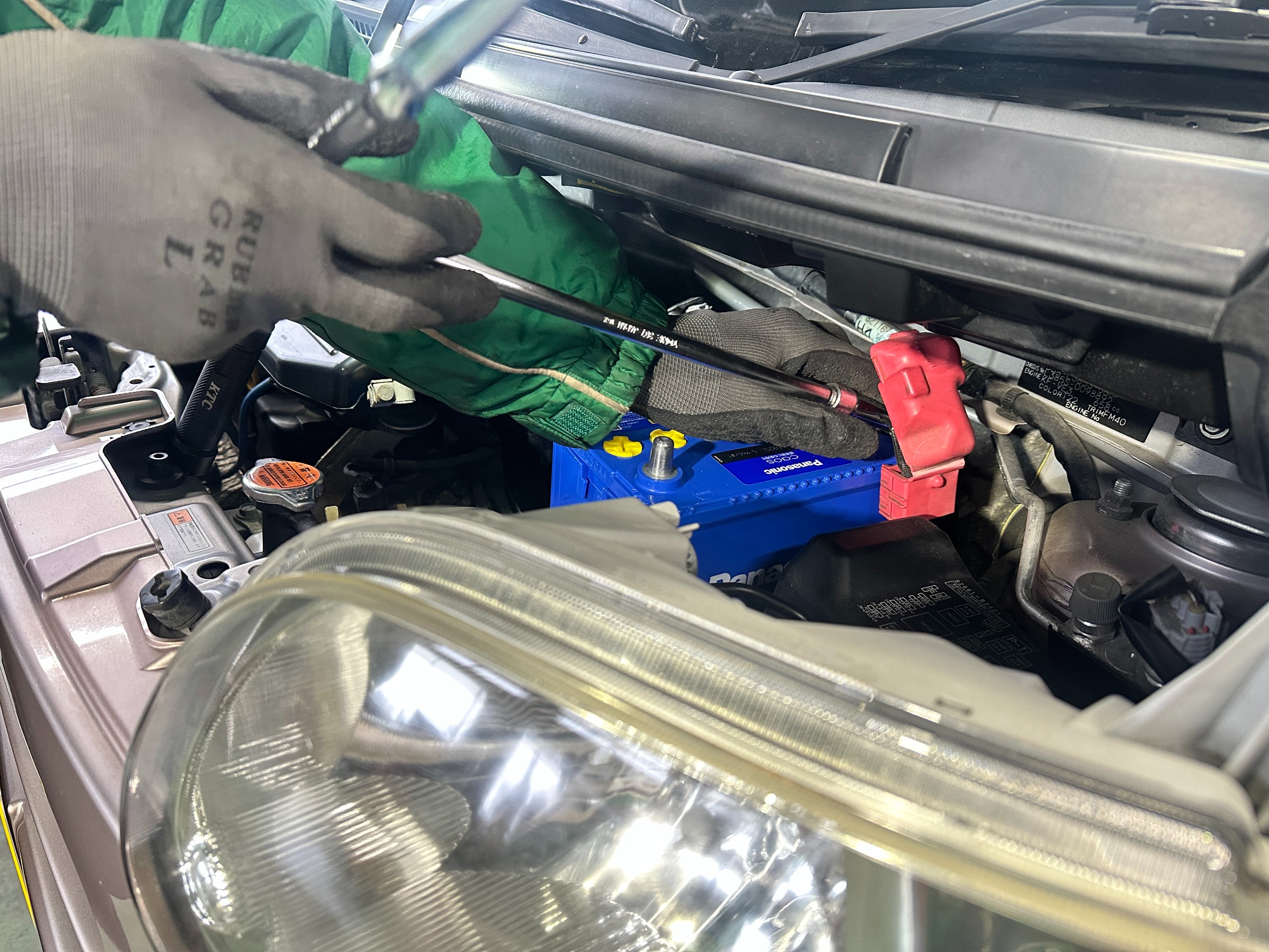 なかなか見ることがないバッテリーの点検も