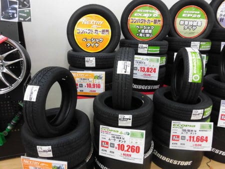 今日は作業の合間をみながら、店内にメイン展示しているスタッドレスタイヤを