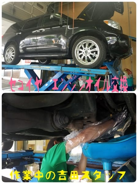 本日はトヨタ セコイヤのエンジンオイル交換から作業スタート!!