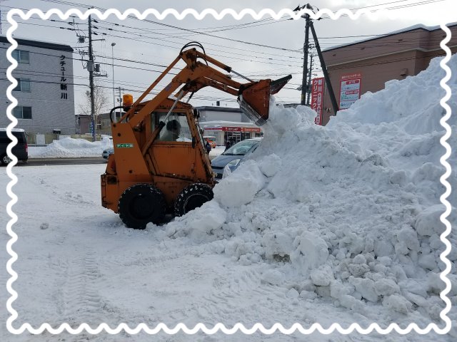 当店駐車場の雪山がどんどん大きくなっております(+_+)