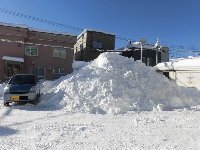 新川店ではこの2日間で雪山がこんなに大きくなりました^^;