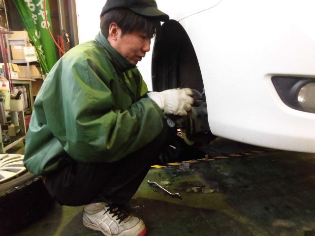 ③車検入庫中のアリオンはフロントブレーキパッド交換