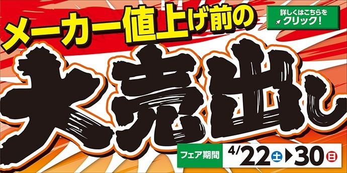 そして、22日(土)から『タイヤ価格値上げ前の大売出し』が開催されます!