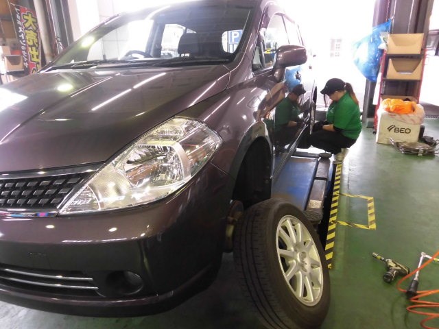 タイヤ交換中の青島スタッフ!