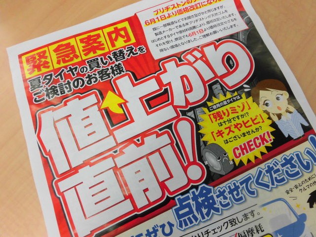 タイヤ値上がり前に!!!