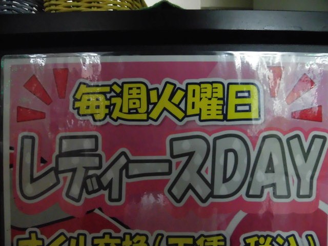 ★毎週火曜日はレディースデー★ オイル交換 メンテナンス用品お得ですよー!!