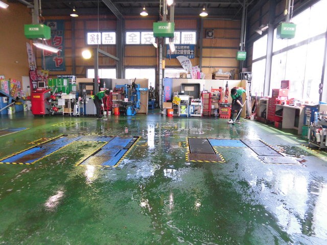 まずは朝一、ピットの床磨きからスタートです!