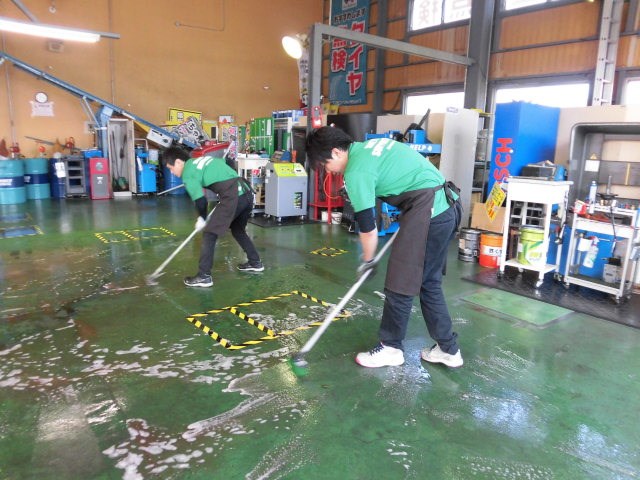 伊藤店長と中村スタッフがゴシゴシしています。