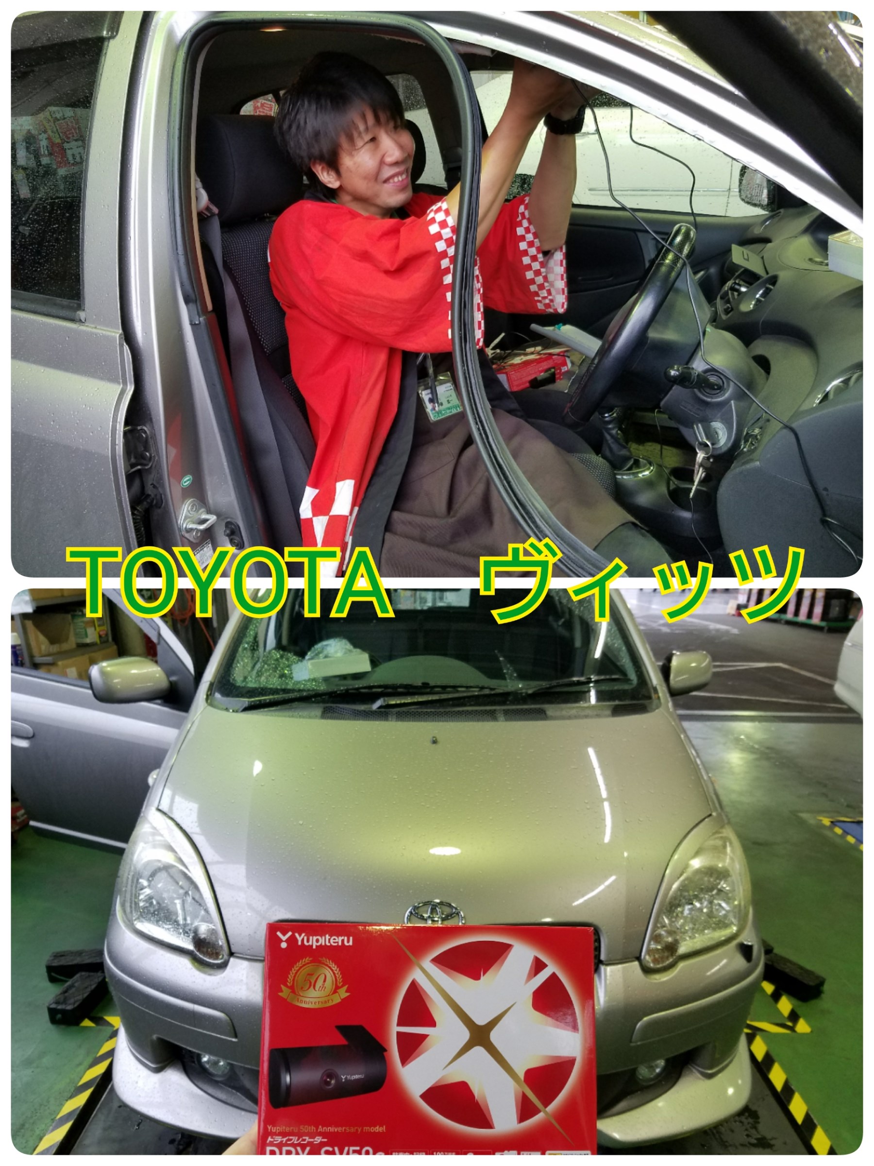 売出し中のドライブレコーダーを取付け中の伊藤店長!