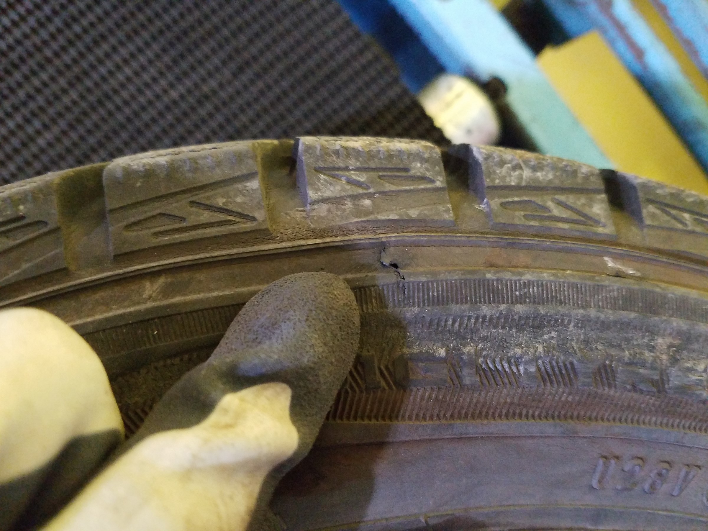 タイヤを見てみると、横にキズが入っていたようで・・・