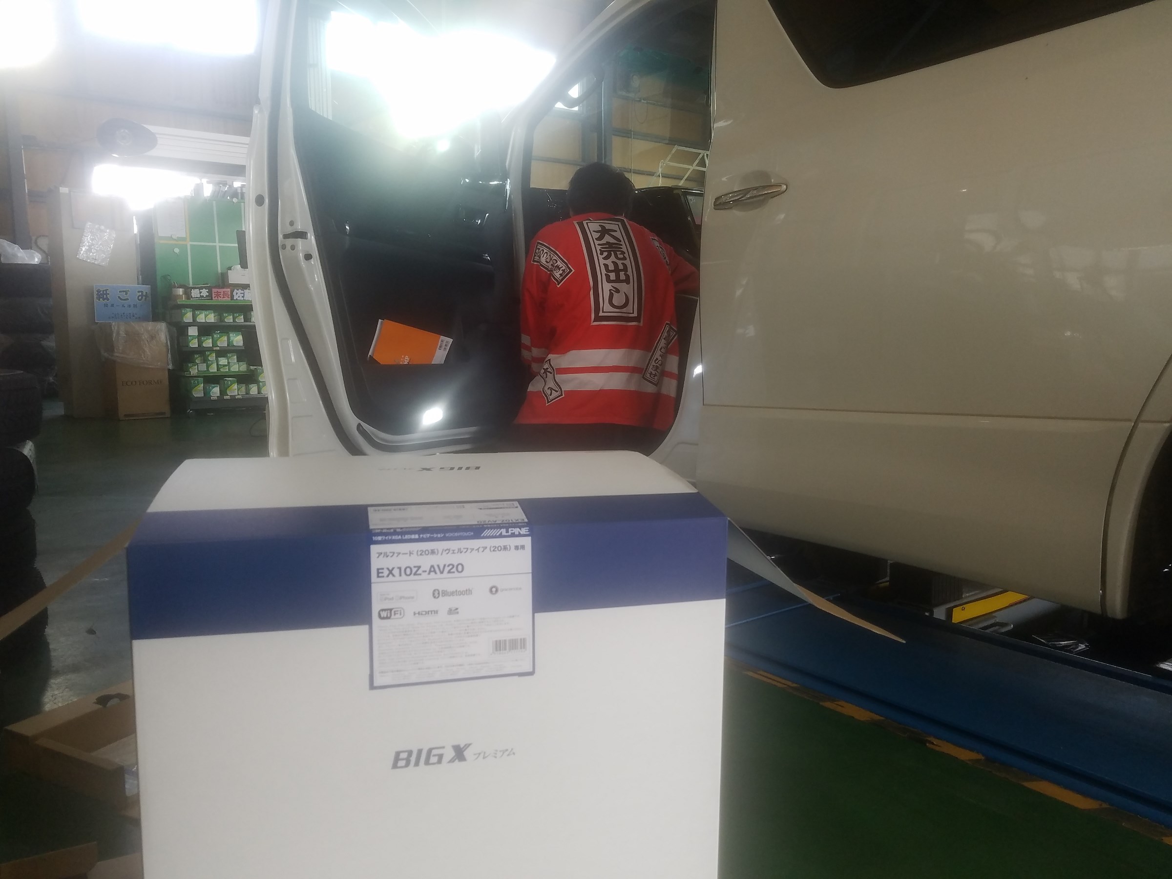ナビ取付け作業中の伊藤店長!