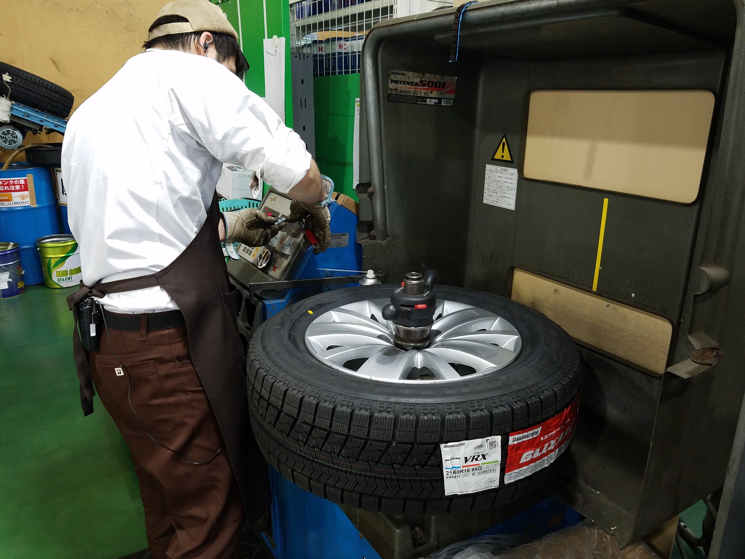 来シーズンの為の冬タイヤ御成約の方の組込み作業中!