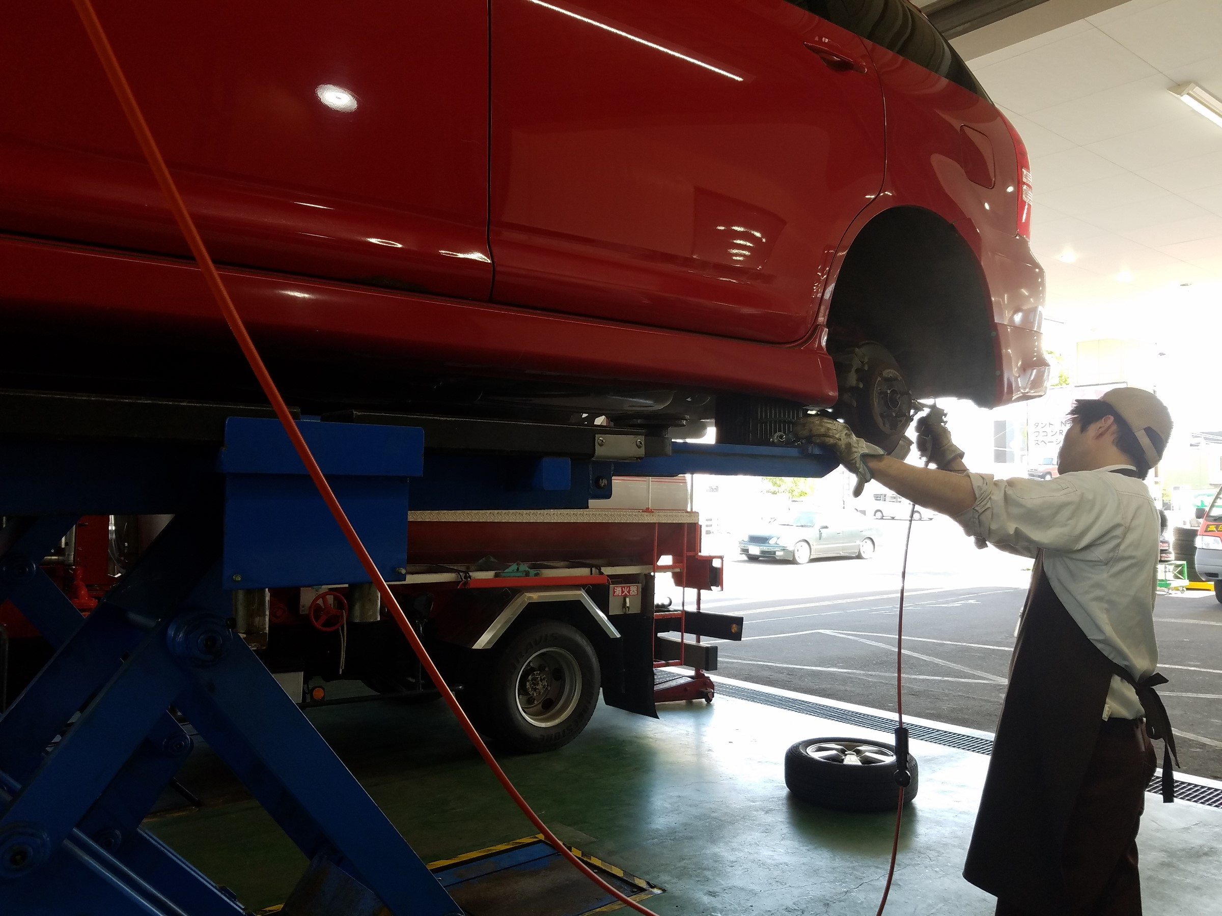 そしてハッシーはご予約のお客様のタイヤ交換&下廻り、ハブ防錆!