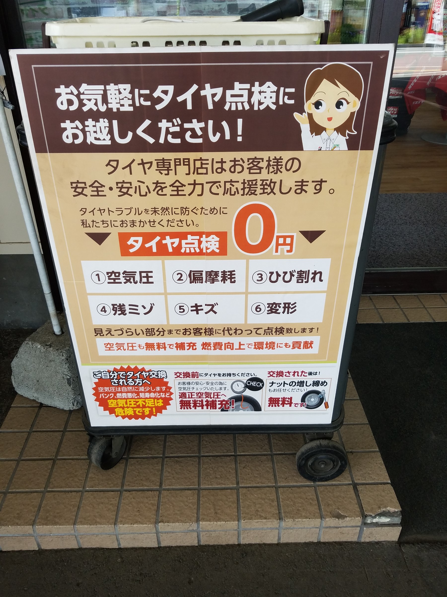 お出掛け前は必ず、タイヤの空気圧点検を