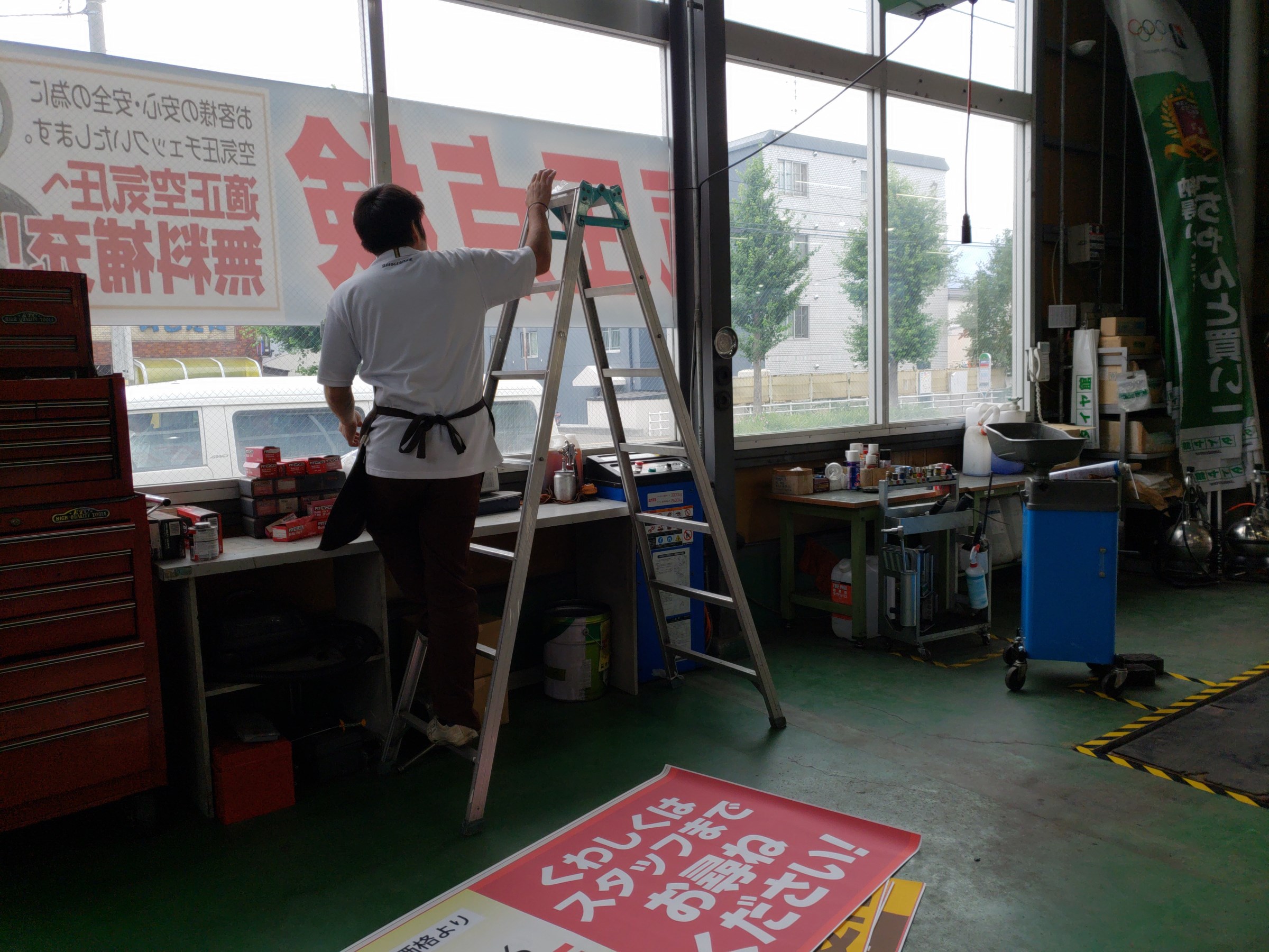 合間時間にピットの窓の印刷物を貼り変えたり・・・