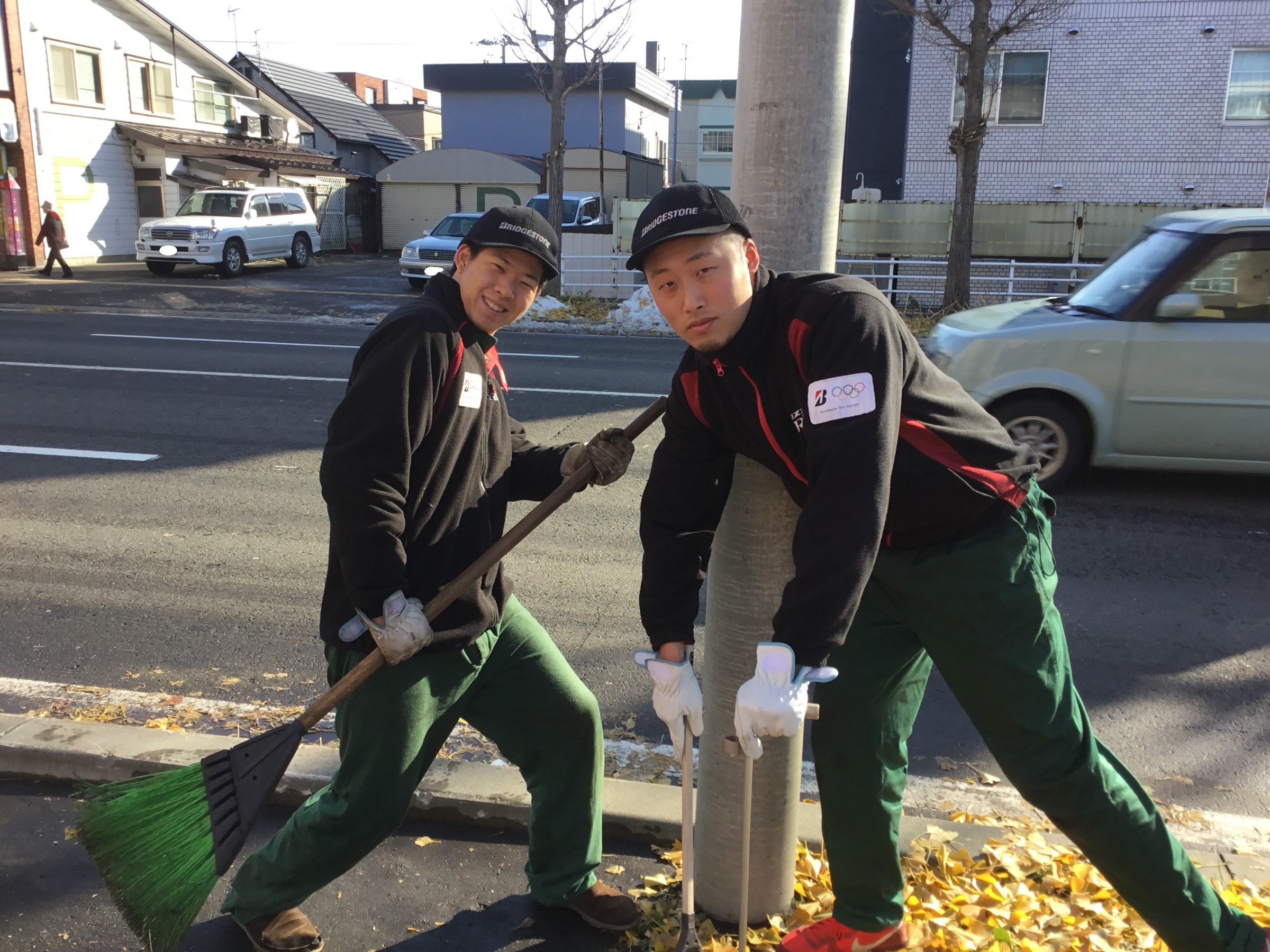 合間の時間にアルバイト青年達は落ち葉の掃除をしてくれていました!!