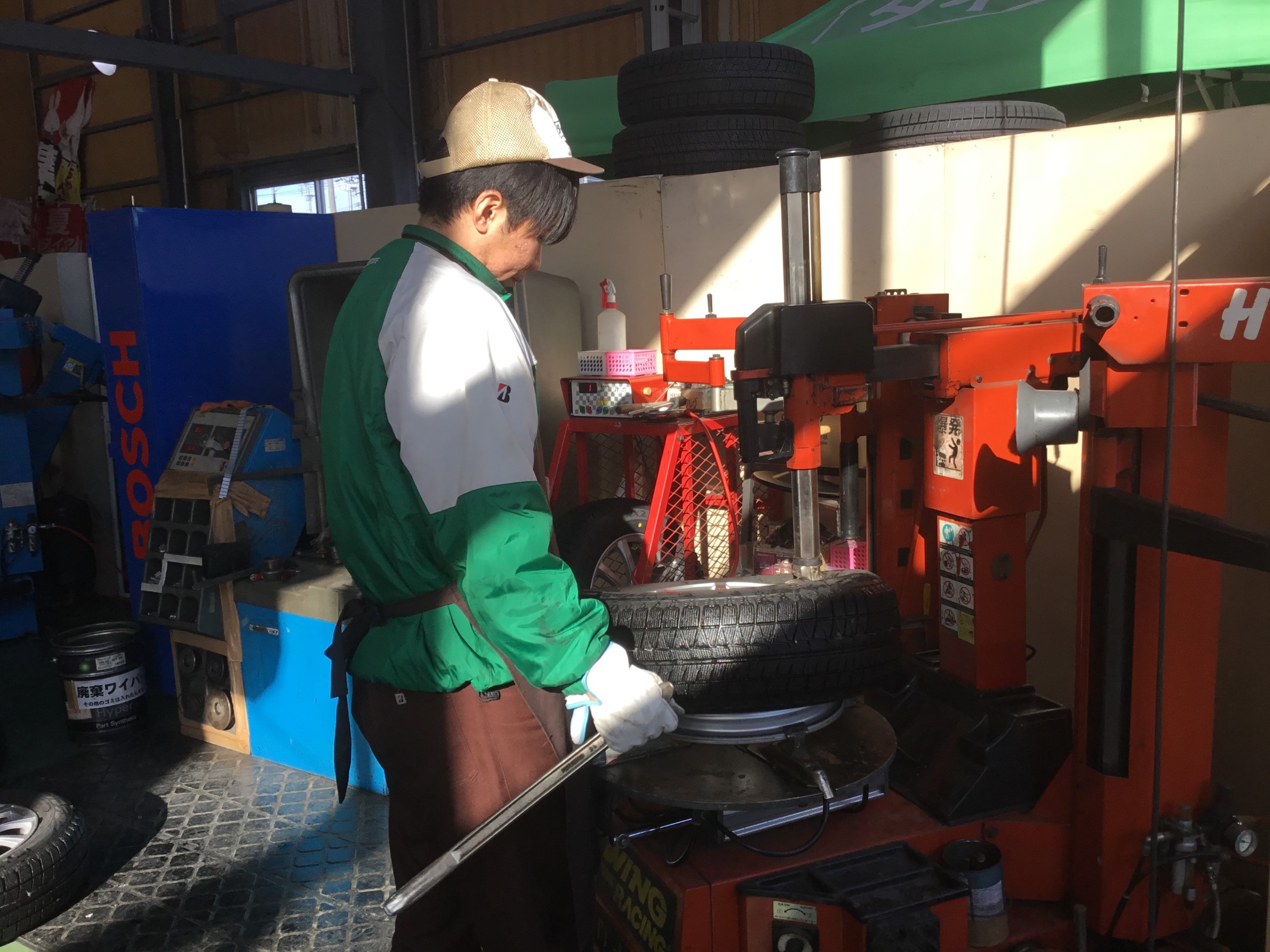 タイヤ組替え中の伊藤店長!!