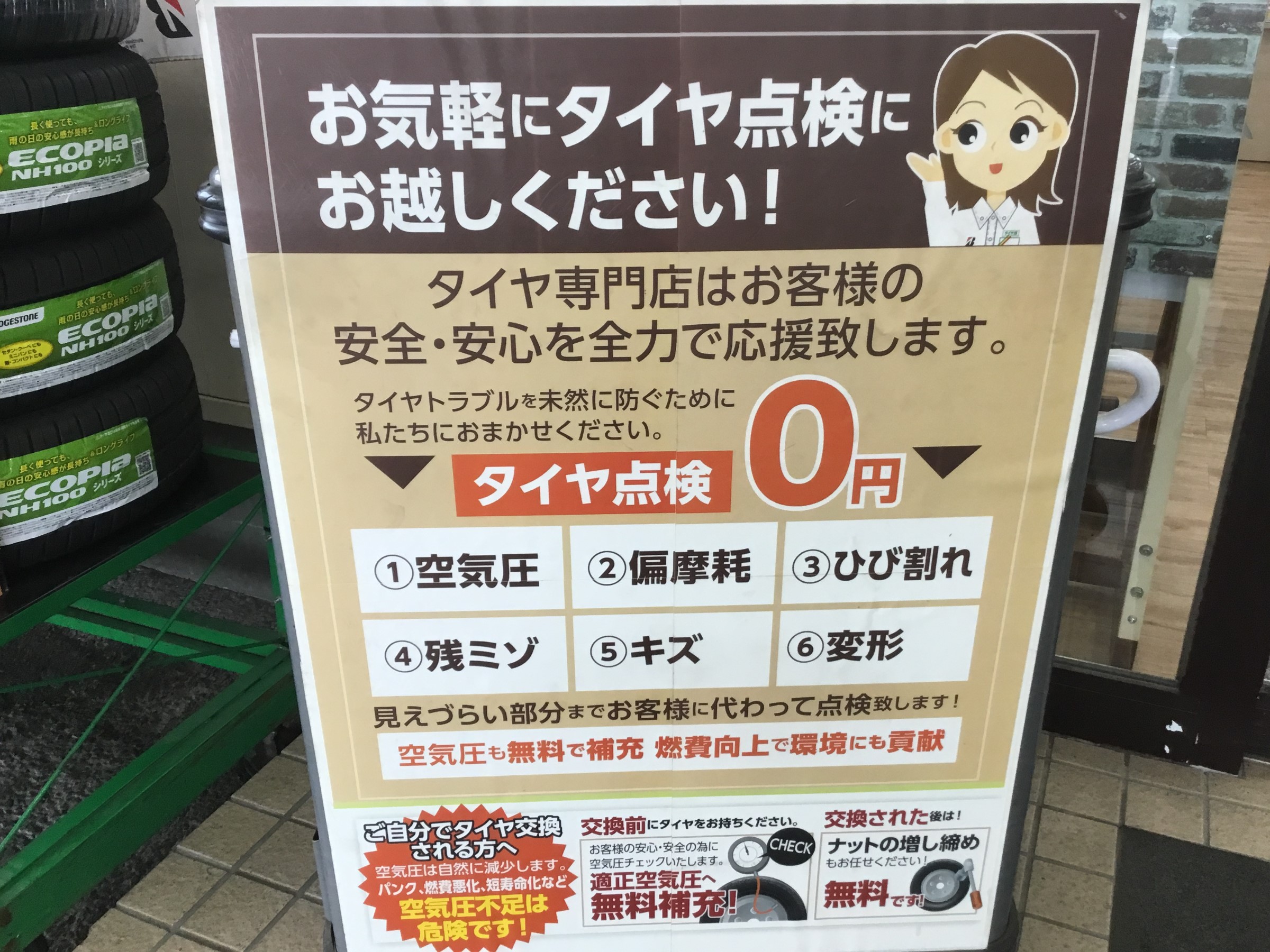 タイヤ館では無料で点検させて頂いております。