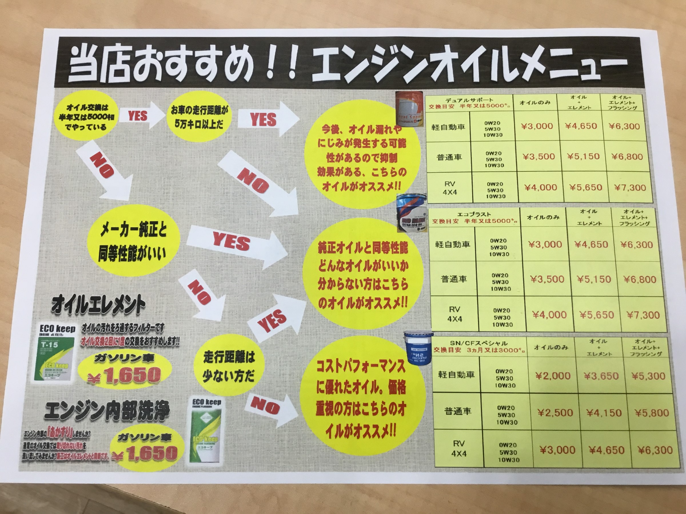 当店ではエンジンオイル交換が軽自動車なら2,000円~