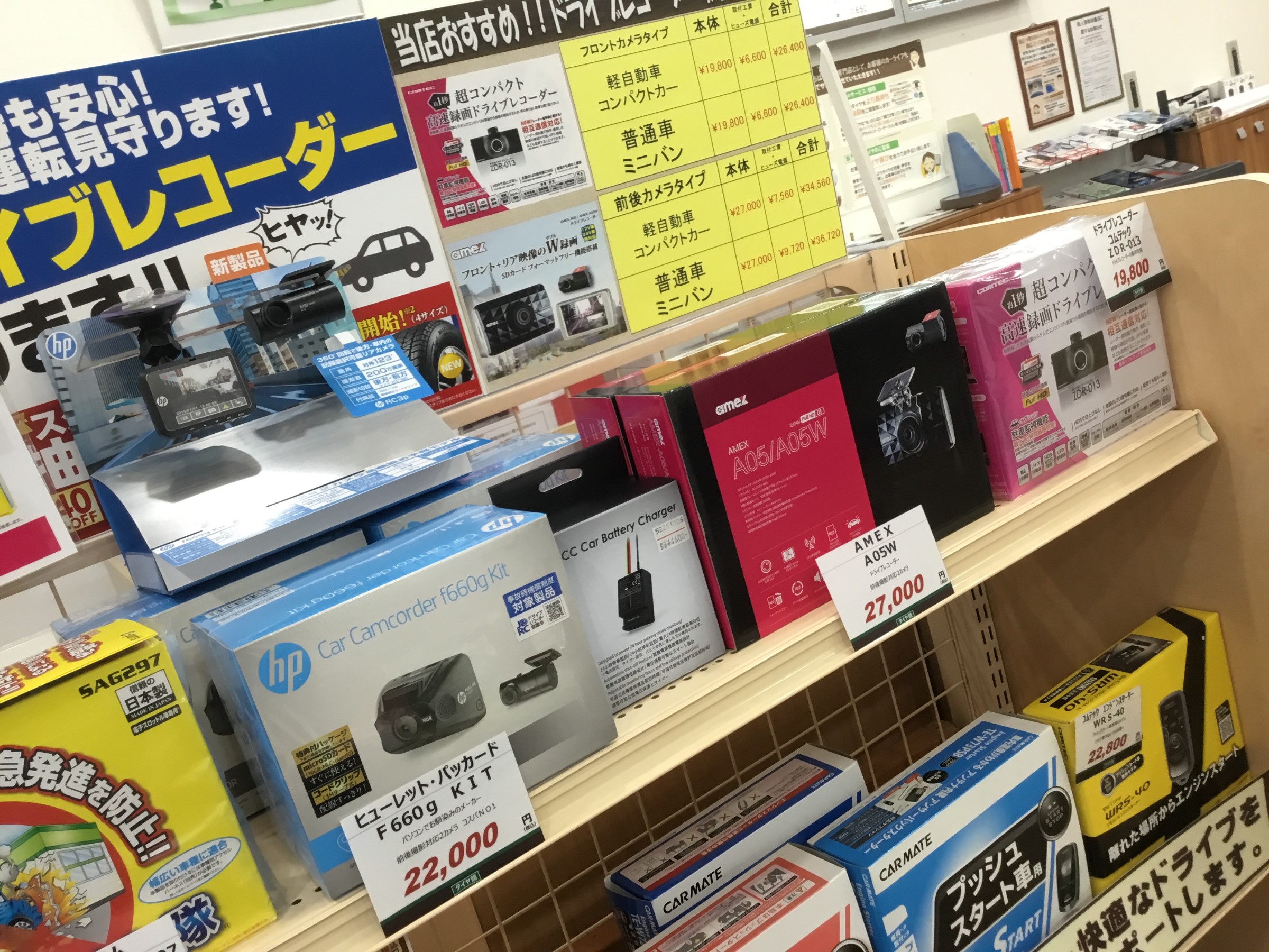 当店、数は多くはないですが、ドライブレコーダーは置いてあります。
