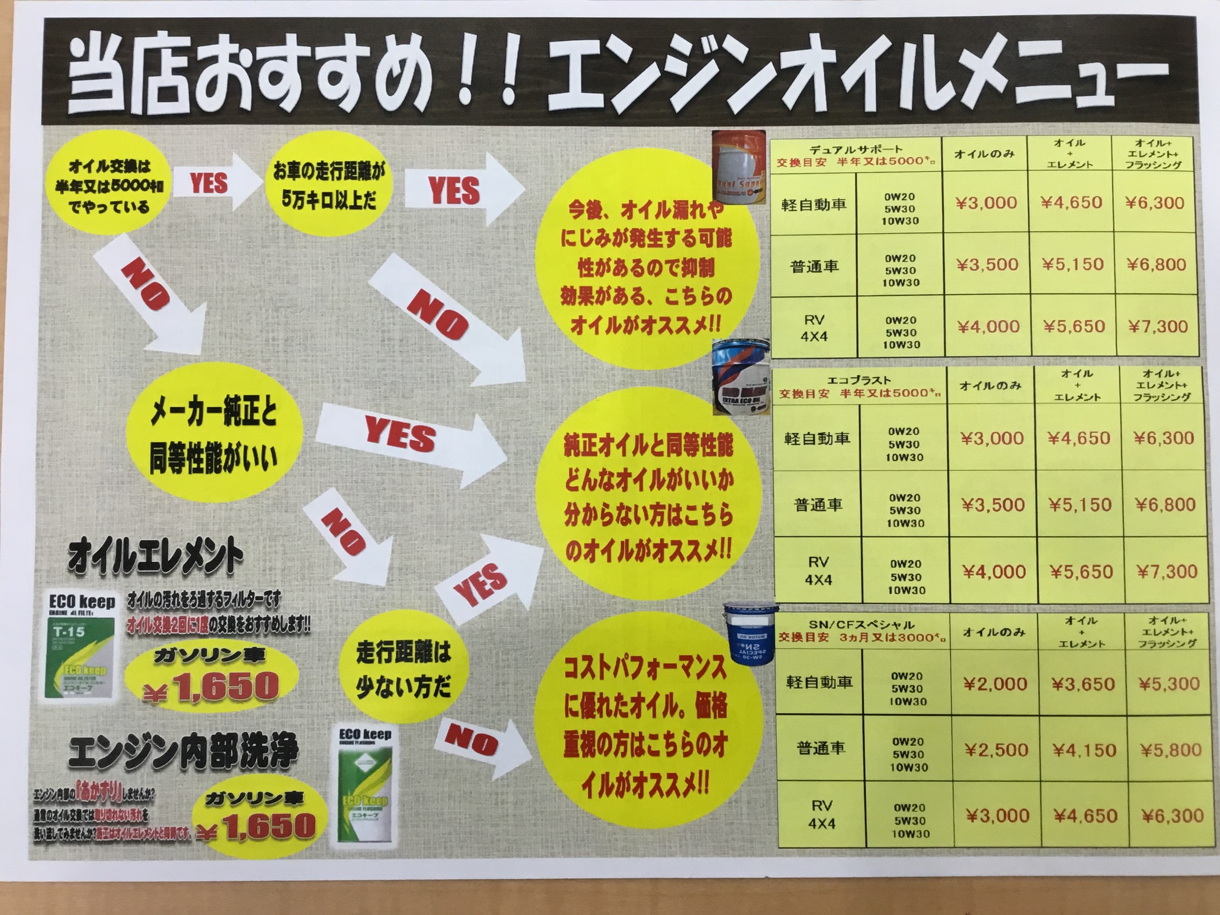 オイル交換のメニュー表作ってみましたので参考にしてみて下さい!!