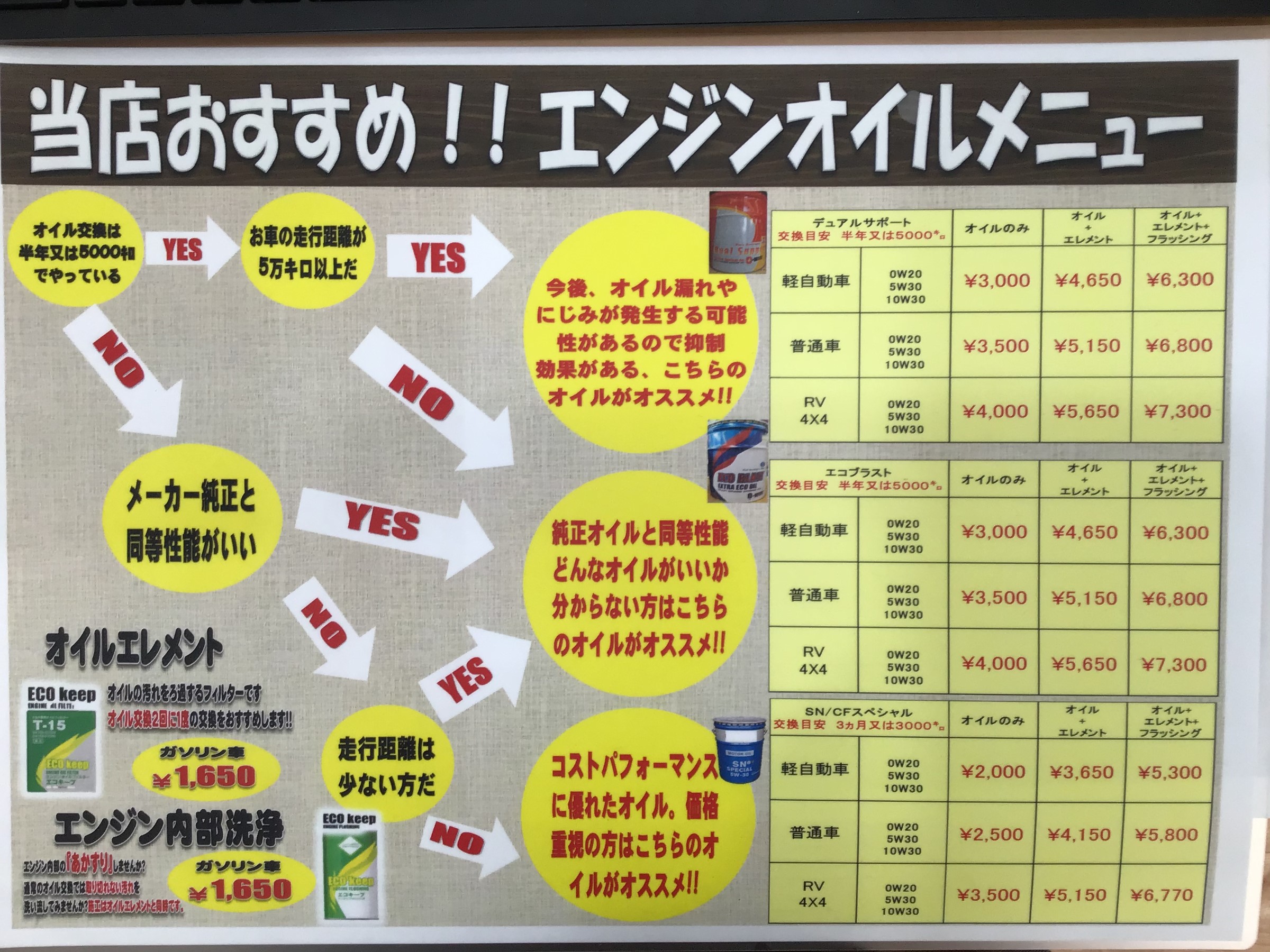 ちなみに価格は税込価格で1台分のオイル使用料(5L未満)+交換工賃込みの価格になってます!!