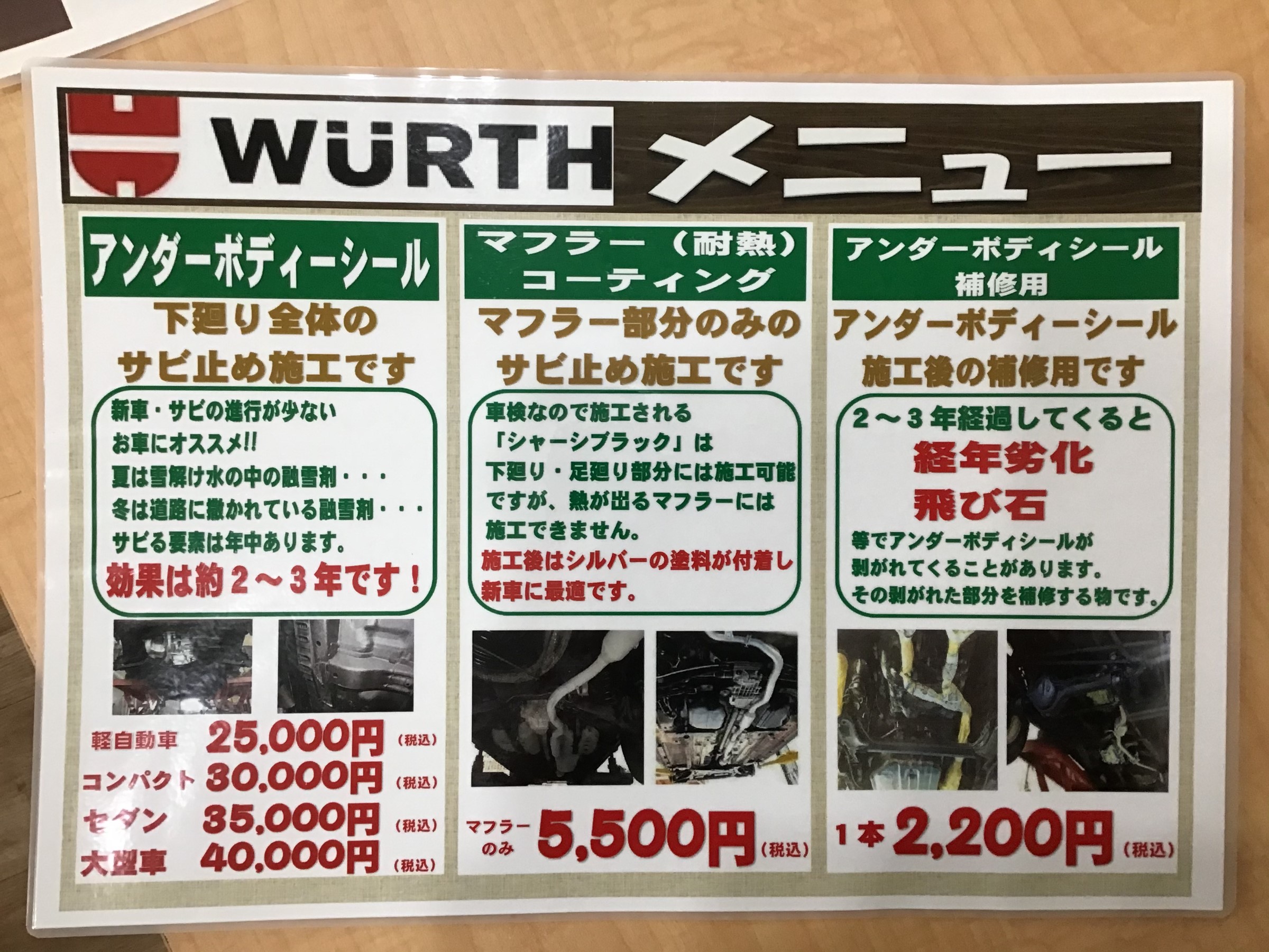 基本は下廻り洗浄→乾かす→マフラー防錆→下廻り塗料施工→乾かす