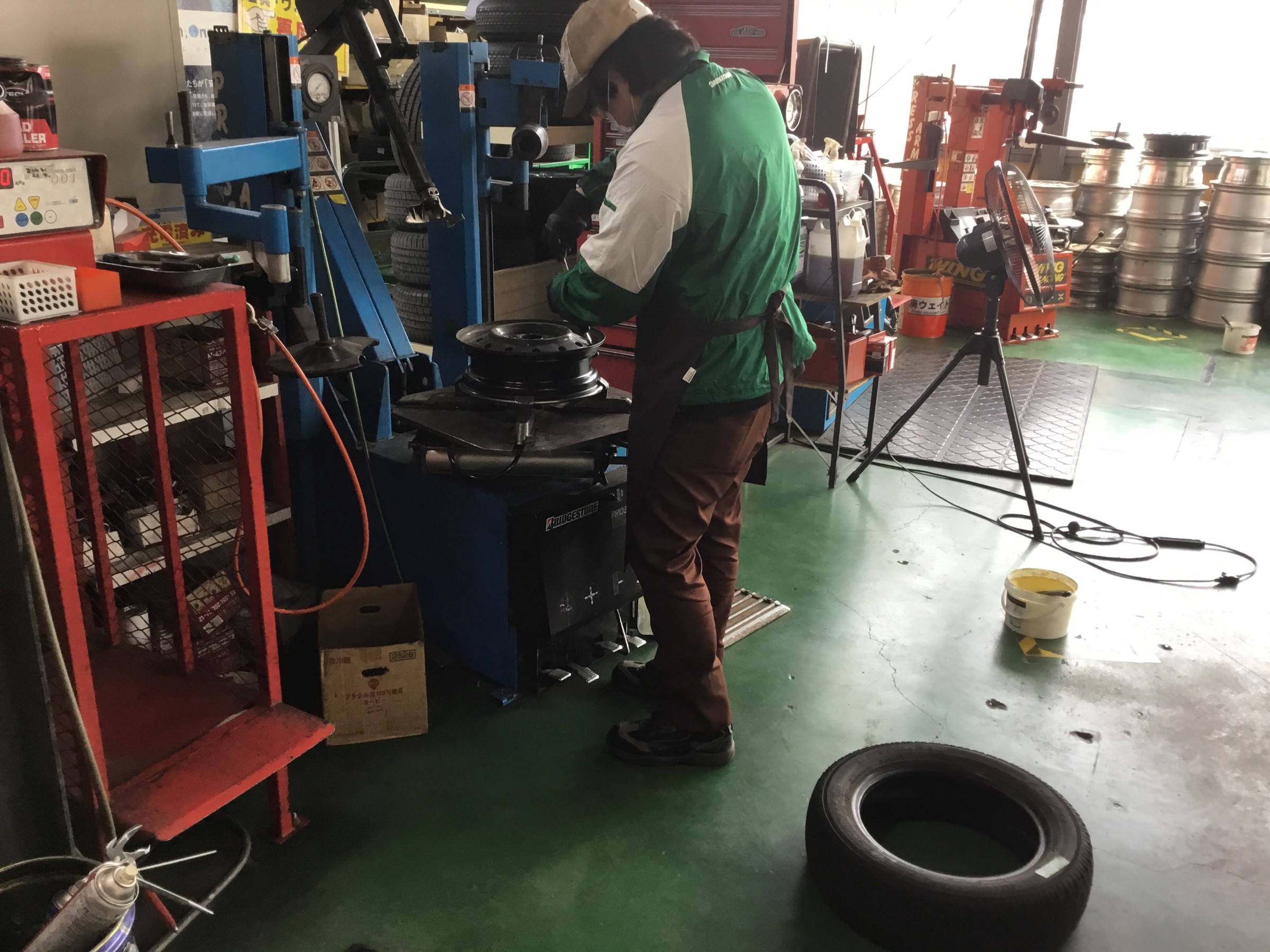 久米さんが新品のタイヤ入替ヤッテマス!!