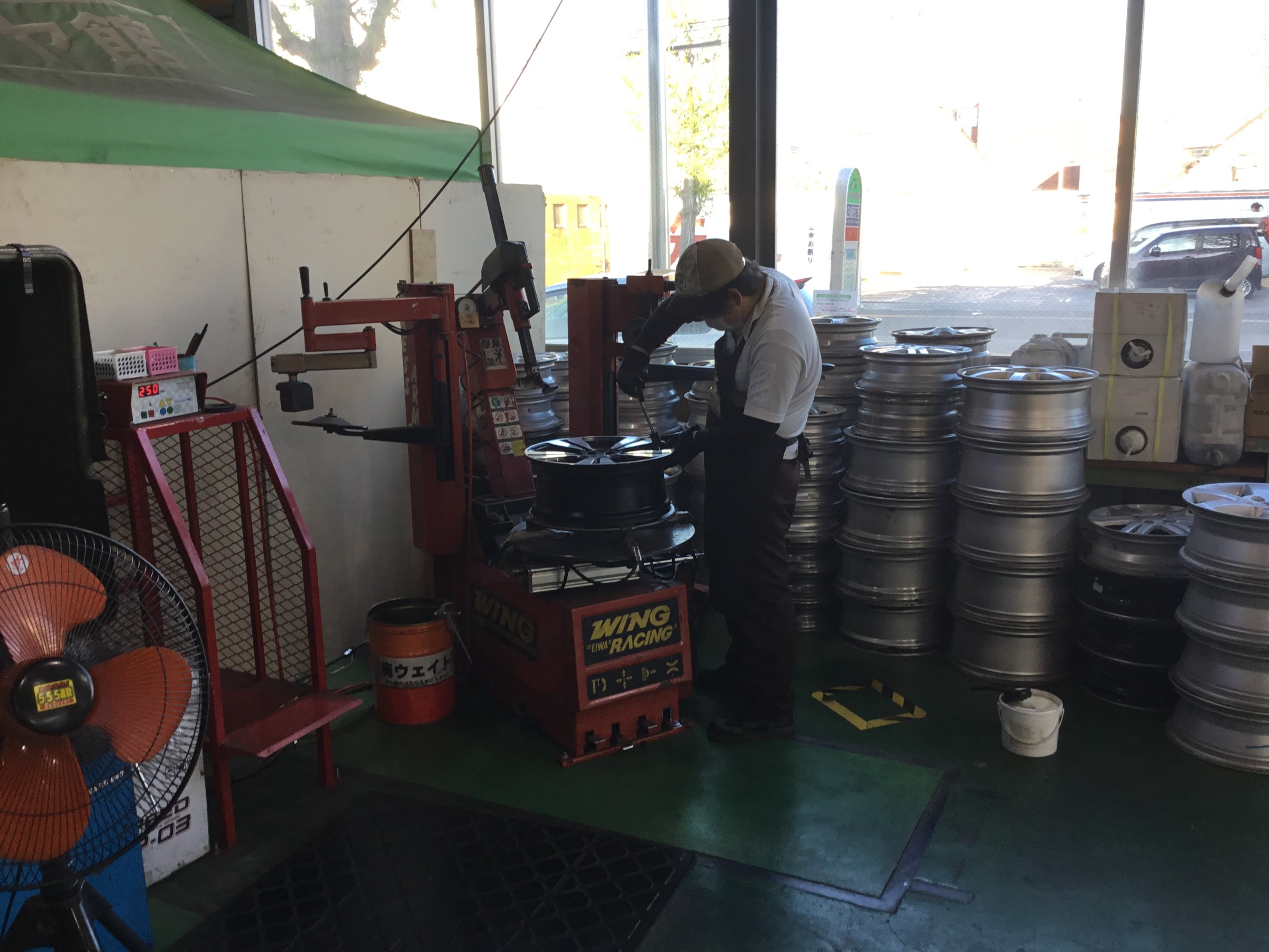 本日、購入して頂いたお客様のタイヤを組込みしている久米スタッフです!!