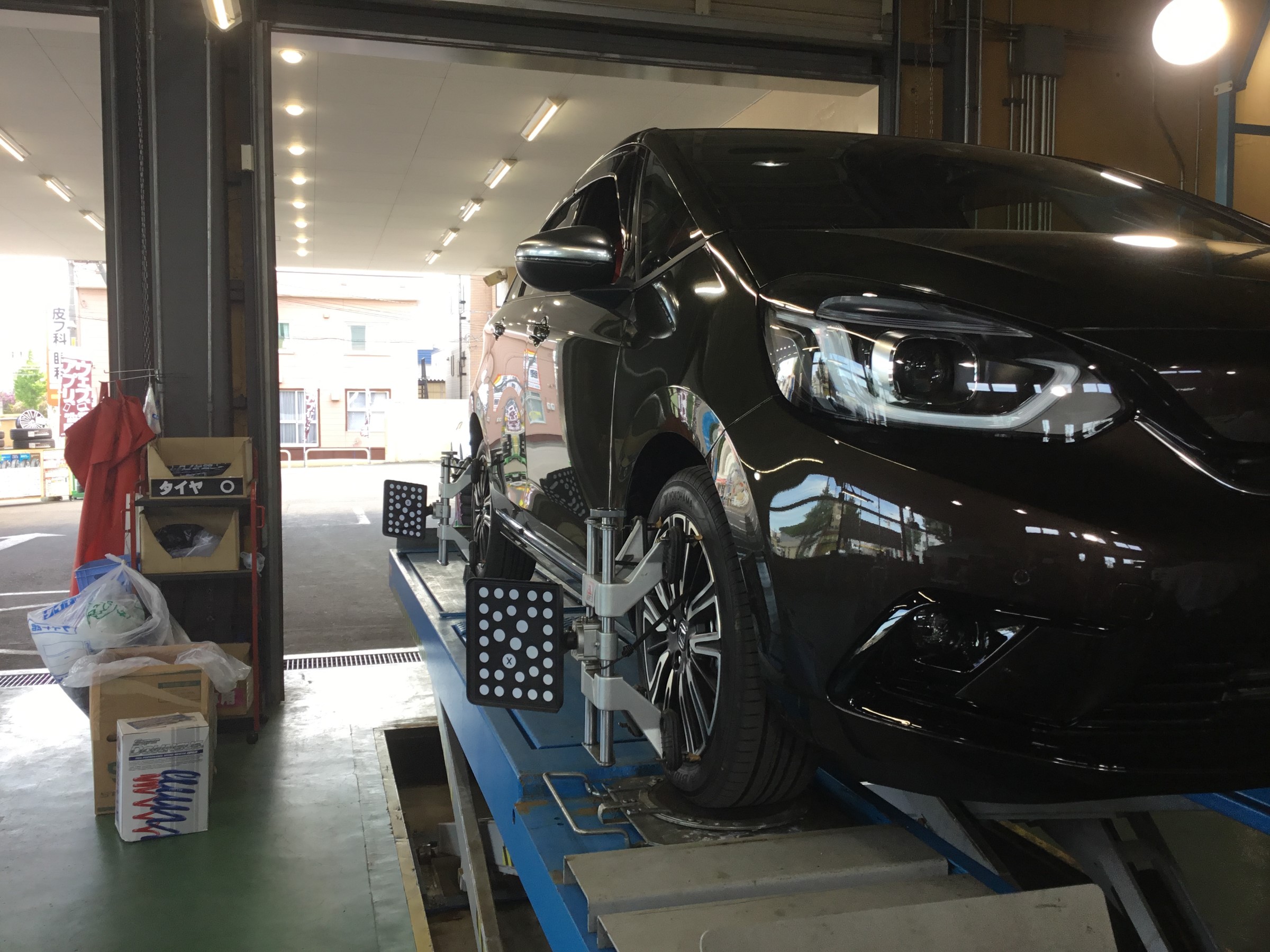 ダウンサスの取り付け後は足廻りの取付け角度が変わりますのでアライメント調整を実施!!