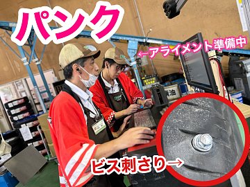 どーもジャイアンです★ 本日、パンクの修理にてご入庫のお車に 大き目なビスが刺さってました!! 早速入庫して点検してみると、 おそらく刺さったばかりの状態で、大きなビスが。。。 タイヤをばらして、内側から見てみると こんな感じでした。。。 刺さっている位置的には修理可能な場所なんです...