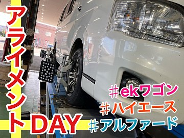 こんにちは!ナミ兵こと浪岡です! 本日は営業車のお車のアライメントを実施です☆ 1台はハイエース★ こちらは多方面で活躍している車両! 営業車のイメージが強いかなと思います♪ 距離も多く乗られておりましたので 部品交換後アライメント作業となりました! もう1台はハイゼット★ こちらは後ろ...