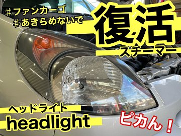 こんにちは! いつもWEBの閲覧ありがとうございます。m(__)m 本日は車検でご入庫されましたファンカーゴの ヘッドライトの黄ばみが気になるとの事で ヘッドライトスチーマーを施工させて頂きました! 近年、樹脂レンズが主流の為年数の経過と共に黄ばみや曇りが出てきます。(´;ω;`)ウッ… 黄ばみや曇...