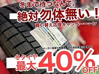 どーもジャイアンです★ 来シーズンスタッドレスを買い替えご検討中のみなさま!! それ、冬までまつなんて勿体ない!? 只今当店では、 買い替え応援キャンペーン!! を開催しております。 倉庫圧迫の為、冬タイヤ最大40%OFFにてご提供させて頂いております♪ ※メーカー希望小売価格または店頭表示...