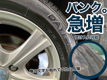 どーもジャイアンです★ 最近、パンクでのお問い合わせが続いています。 みなさんのお車のタイヤは大丈夫ですか? こちらのお車は、レッカーにて当店にご来店。 タイヤを点検すると タイヤのサイド部分の文字が削れています。 こちら、「引きずり」という症状で、 空気が極端に少ない状態で走行する...