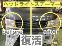 こんにちは!ナミ兵こと浪岡です! 先日トヨタ・ハイエースのヘッドライトの黄ばみでご依頼頂きました! 紫外線の影響もありヘッドライト自体は、 かなり黄ばんでおりました。。。 LEDが装備されておりましたが おそらくヘッドライトが暗くて装備されたのかなとも思います! 左側のヘッドライト...