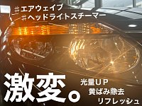 こんにちは、こんばんは!原でございます! 【ヘッドライトスチーマー】 大大大変好評!!!!!!!!!!!!!!! につき、本日も事例をご紹介します。 本日は、ホンダ エアウェイブ 施工前 今回は車検でご入庫のお客様でした。 光量不足に少し不安があったのと 黄ばみを除去してキレイにしたい...